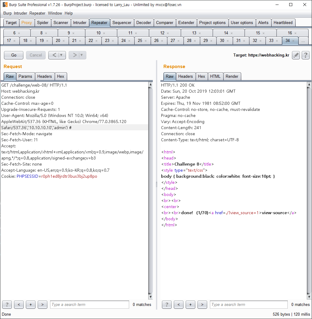 | 웹해킹 9번 (webhacking.kr old 9) (0) | 2019.10.30 |