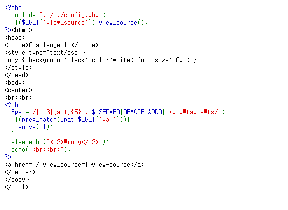 - preg_match는 정규표현식과 GET 파라메터 Val 값을 비교한다
