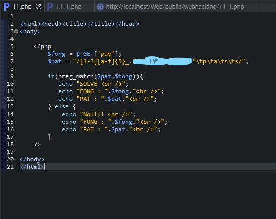 2. 11.php : pay값을 fong에 저장하여 $pat과 정규식 비교