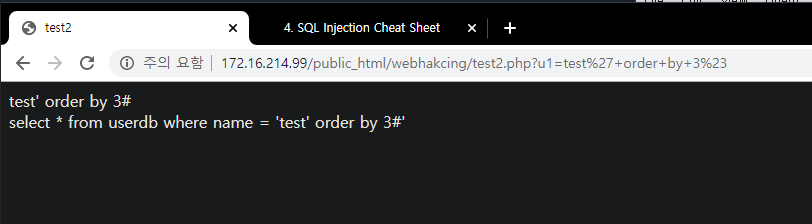 - www.test.com/?no=1' order by 2# -> if(error); column quantity = 1