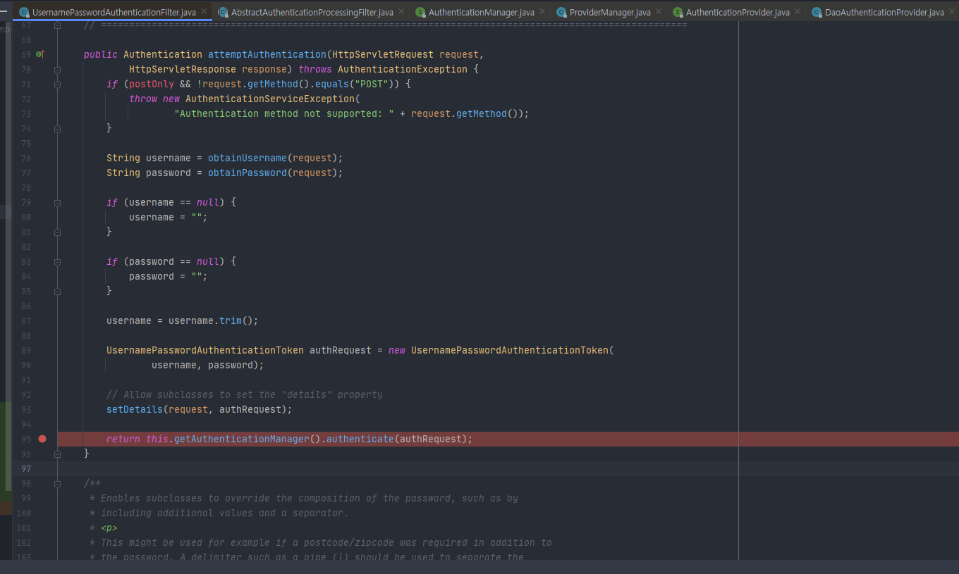 // 보통은 prefix에 따라 사용자가 입력한 패스워드를 암호화하여 저장된 데이터와 일치하면 인증을 해줌