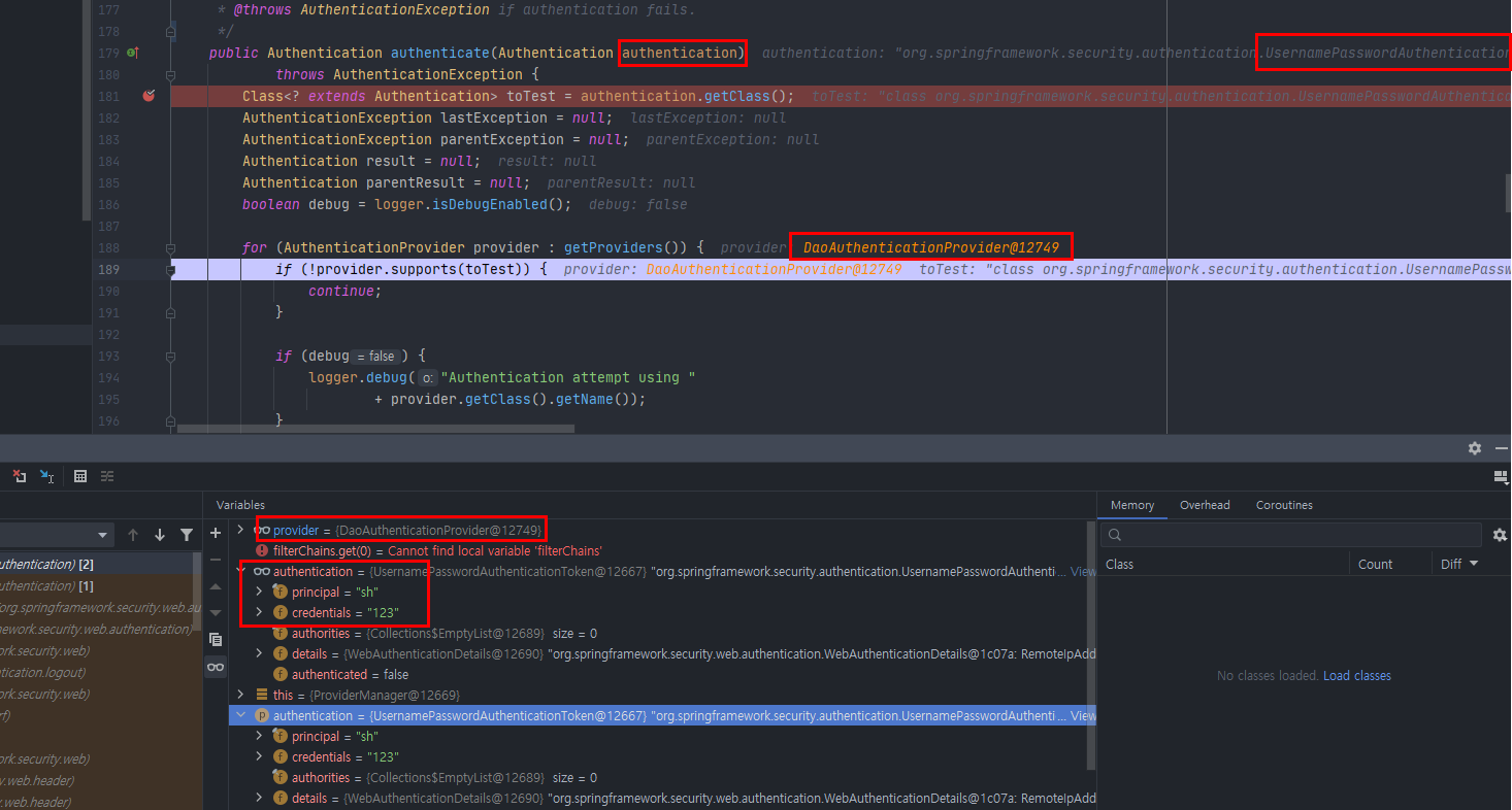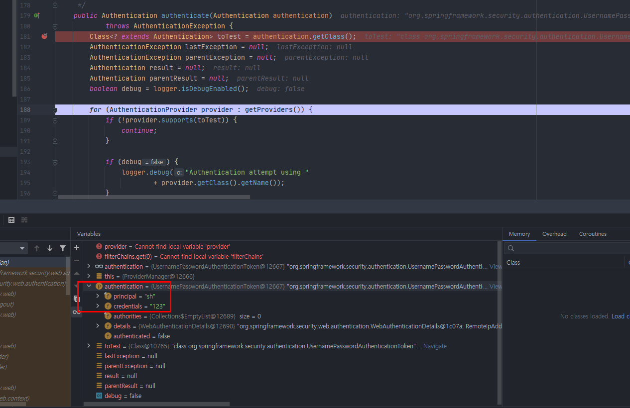 ㅇ 인메모리 사용자 추가 및 로컬 AuthenticationManager를 빈으로 노출