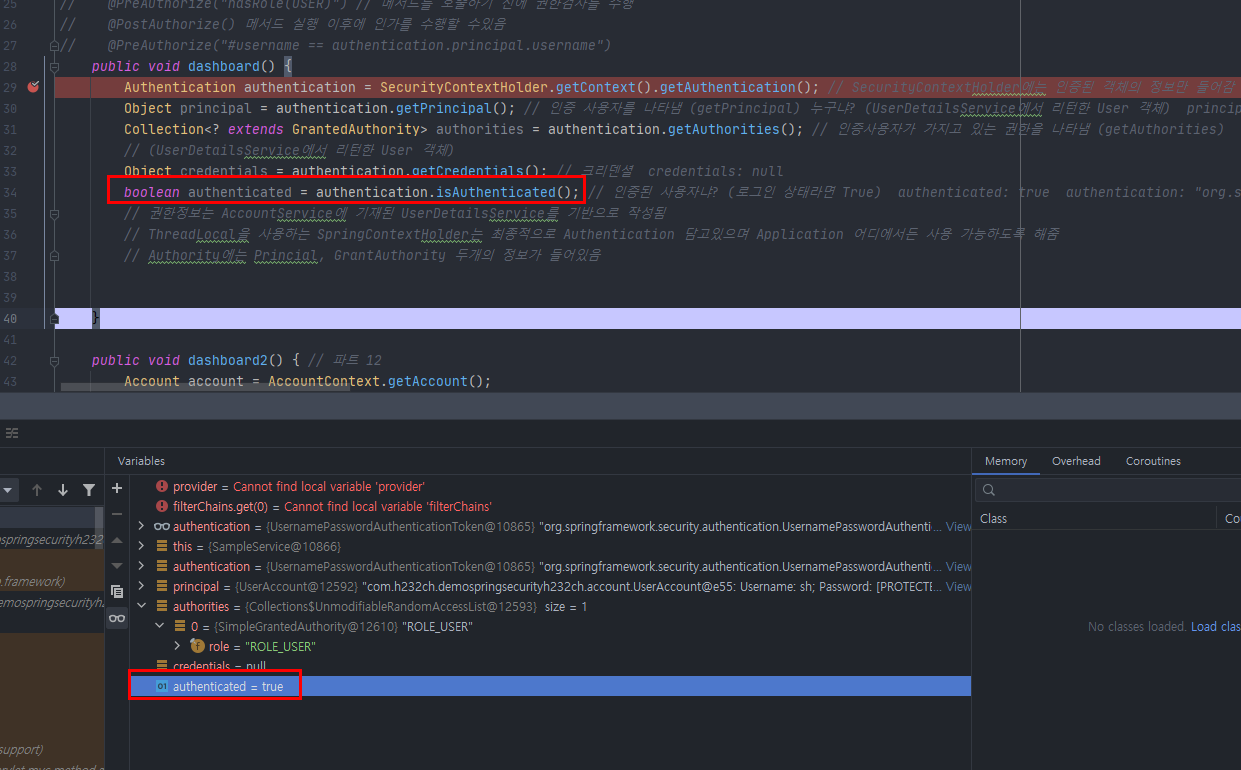 // 위의 값은 SecurityContextHolder에 principal로 저장 이 principal을 @AuthenticationPrincipal로 받아와서 사용함